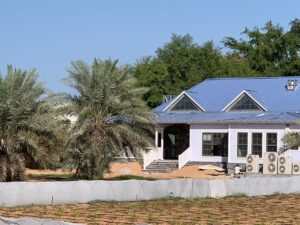 طابع ريفي أمريكي أصيل: واجهة تتميز بسقف مائل متعدد المستويات، ومدخل رئيسي ضخم بواجهة حجرية، وإطارات نوافذ عريضة بيضاء اللون. · تراس خارجي فسيح: تم تصميمه ليكون امتداداً طبيعياً للمساحة الداخلية، مثالي للاسترخاء وتناول الطعام في الهواء الطلق وسط أجواء هادئة.