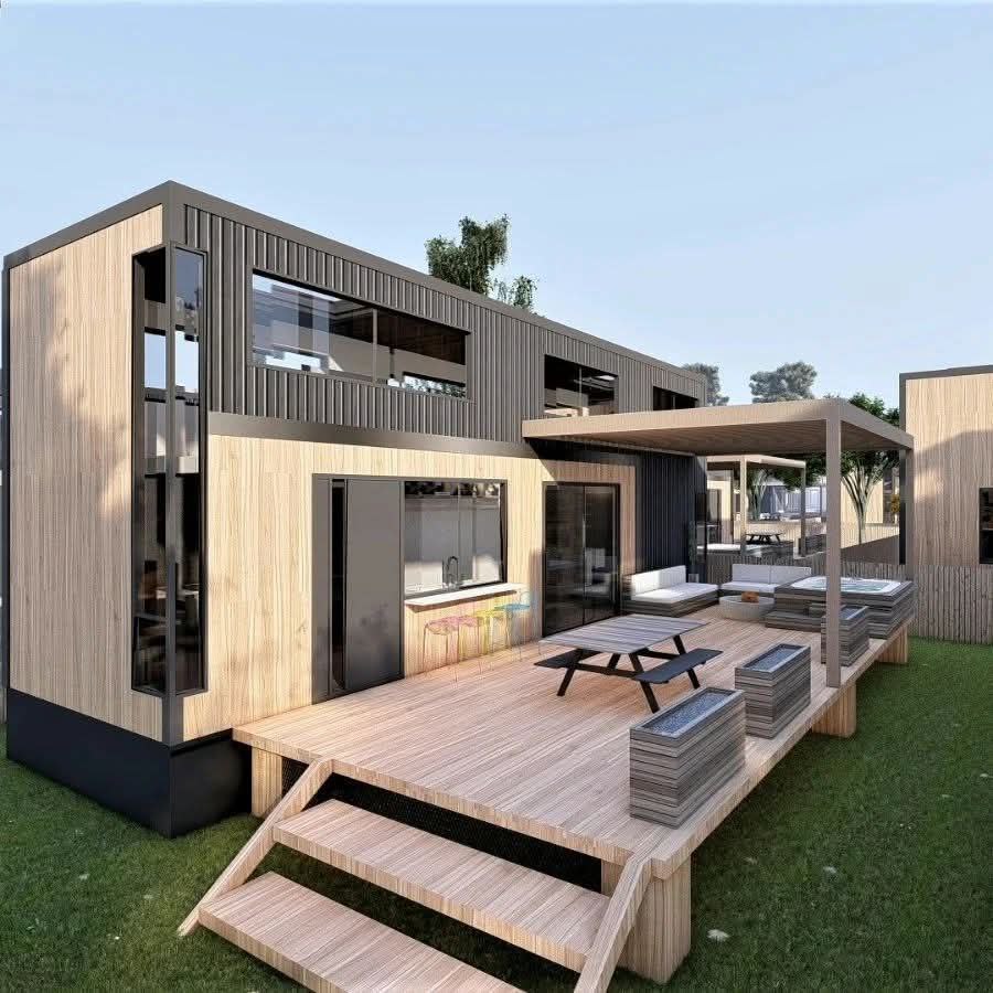 نقدم وحدات منتجعية جاهزة مسبقة الصنع بتصميم هندسي متكامل يجمع بين الفخامة المعمارية وسرعة الإنجاز، باستخدام أنظمة البناء بالفولاذ الخفيف لضمان الجودة والمتانة في مختلف البيئات.