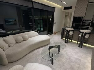 تصميم مفتوح ومشرق مع مقاعد مريحة ومناسبة للاسترخاء والترفيه · ديكور عصري وإضاءة ذكية تضفي أجواء دافئة وجذابة.