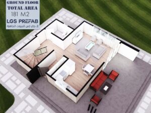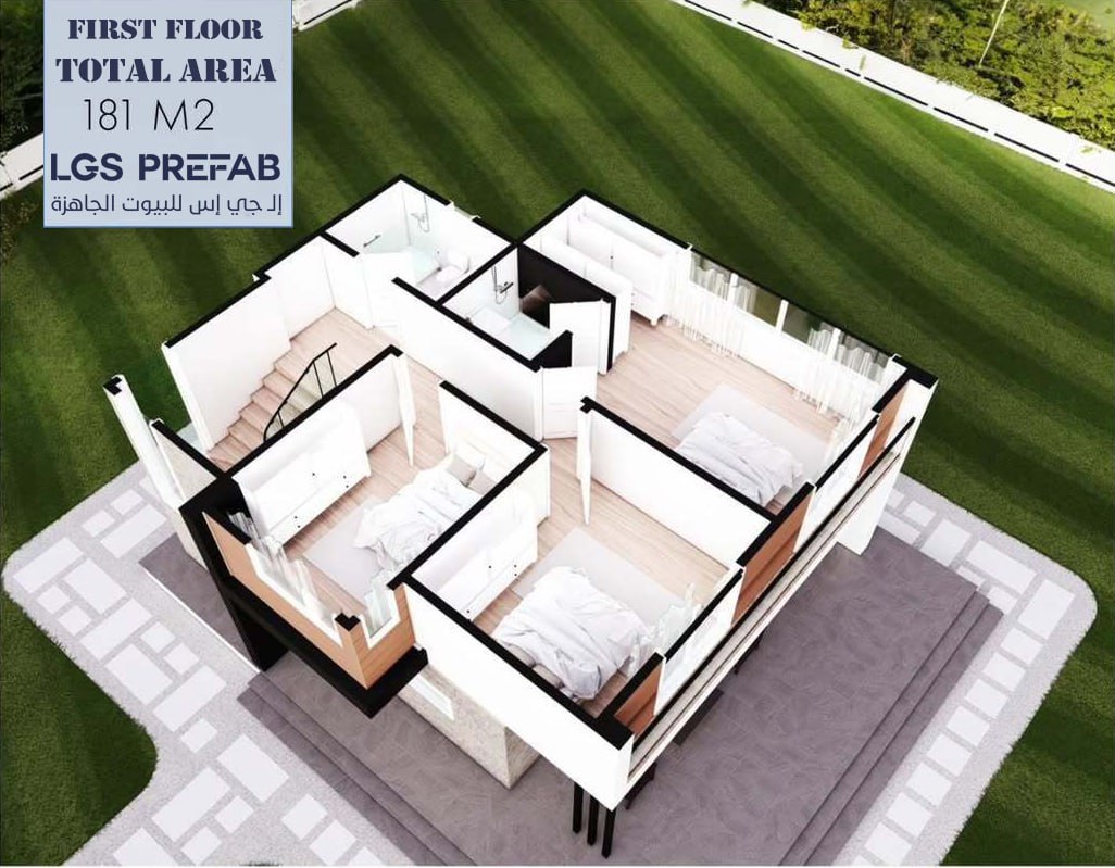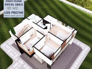 ✅ منزل من دورين الدور الأرضي يحوي على صالة معيشة ومطبخ مفتوح وحمام, الدور الأول يحوي على ثلاث غرف نوم واحدة منهن ماستروحمام.مساحة 181 m2