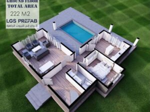 - الطول والعرض: يجب أن يزيد بمقدار 30 سم على الأقل من كل جانب عن أبعاد البيت الجاهز.